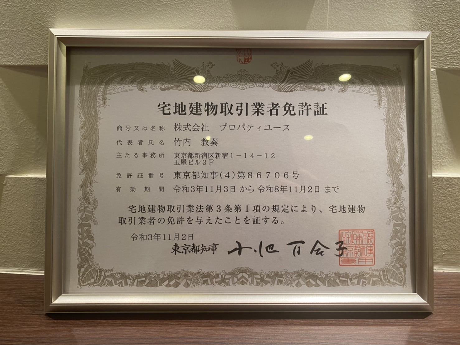 宅地建物取引業免許も無事更新の運びとなりました。